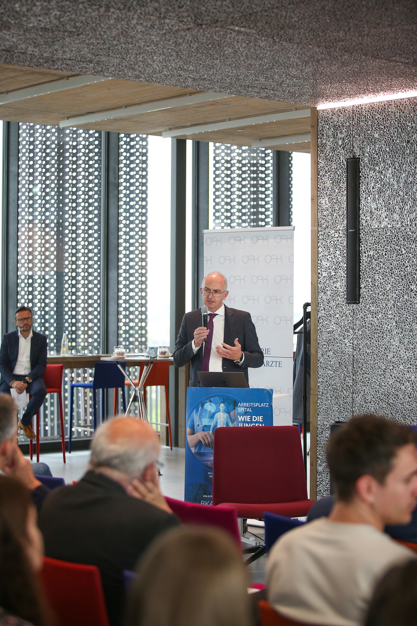 Der Zukunftsforscher Reinhold Popp, Leiter des Institute for Futures Research in Human Sciences an der Sigmund Freud-Privatuniversität in Wien, betonte, dass man sich heute in einem „Arbeitnehmermarkt“ befinde und die Arbeitgeber mehr denn je gefordert sind, sich um neue Mitarbeiter zu bemühen und ihnen ihr Krankenhaus als Arbeitsplatz schmackhaft zu machen: „Viele sind es gewohnt, sich als Arbeitnehmer beim Arbeitgeber zu bewerben – jetzt ist es umgekehrt. Der Arbeitgeber muss so attraktiv sein, dass der Arbeitnehmer sagt, da will ich arbeiten. Dazu gehört neben dem Gehalt vor allem die Lebensqualität. Und es geht auch ums Arbeitsklima und um eine gewisse Flexibilität, die aber im Einklang mit der beruflichen Sicherheit stehen muss. Dafür hat die Arbeitswissenschaft ein schönes Kunstwort erfunden, nämlich Flexicurity.“